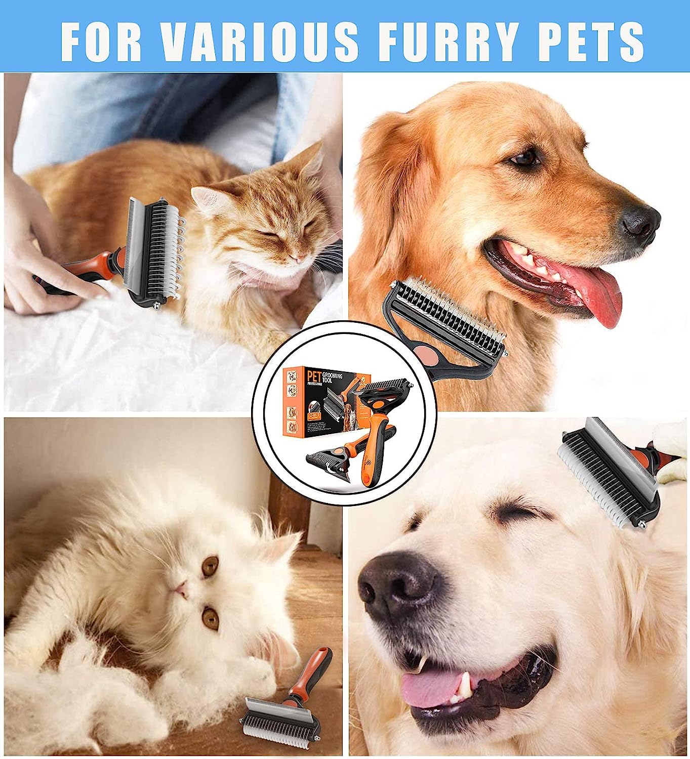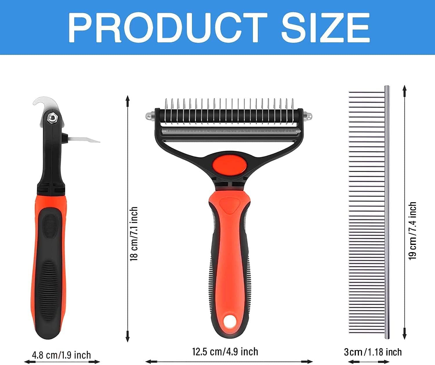 - ★【Sin arañazos, sin dolor】-Ambos lados de los dientes están redondeados en los extremos, masajea suavemente la piel de la mascota sin ningún arañazo. Mientras tanto, el lado interior de los dientes es lo suficientemente afilado como para cortar suavemente las alfombrillas duras, enredos y nudos sin tirar.